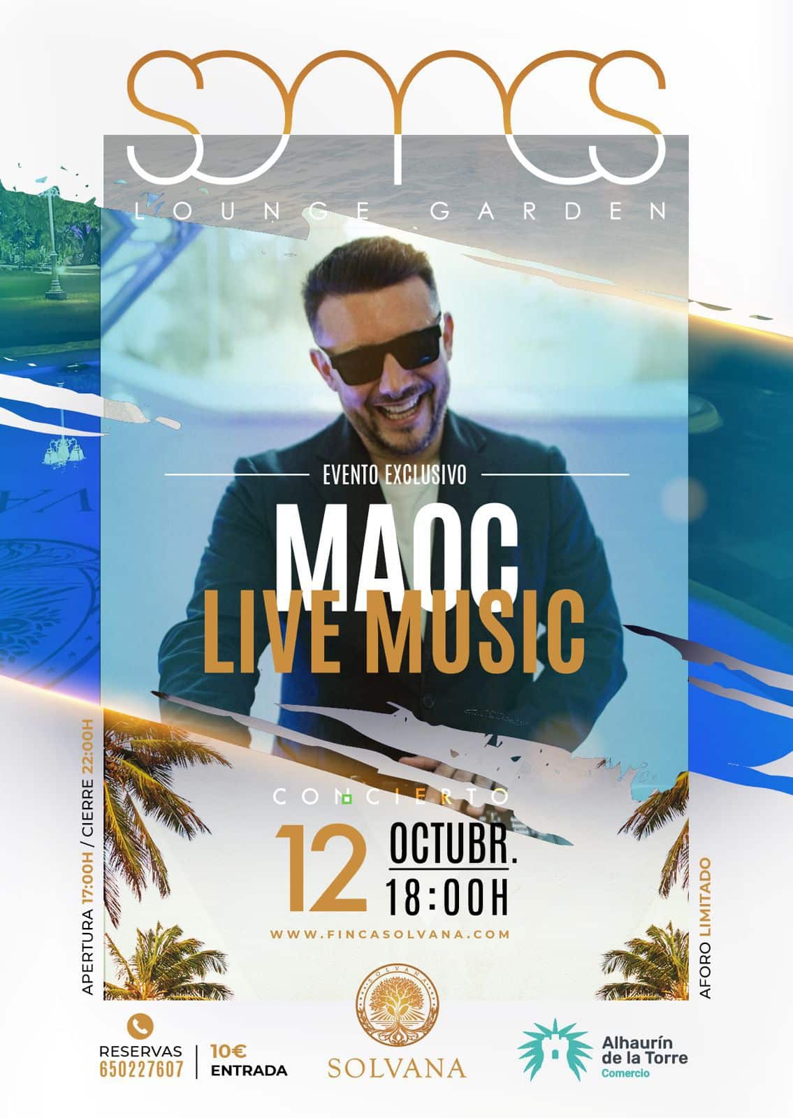 El Domingo 12 de octubre tienes una cita con la música. Desde las 18:00, DJ Maoc toma los mandos para llevarte en un viaje sonoro que empieza con el sol cayendo y acaba con el alma vibrando.